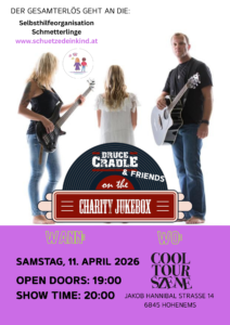 Seit über 10 Jahren engagiert sich Bruce Cradle mit seiner Charity Jukebox für betroffene Kinder & Jugendliche. Mit seiner Musik gibt er den Kleinsten eine